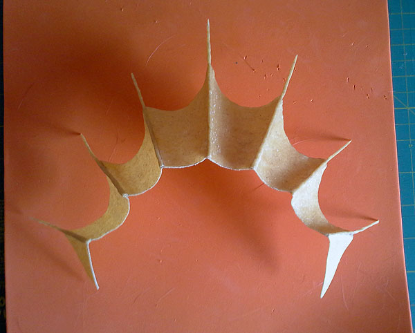 It’s official — I love Worbla thermoplastic because this shit is da BOMB. I deliberately wanted the crown to look a bit rough and organic (twisted spines between the fins, etc.) so I didn’t worry too much about smoothing out the surface apart from a layer of wood glue. If you do want a smooth surface you can use wood glue, gesso, or air-drying clay (NOT SCULPEY — you bake this and the entire thing will melt), or apply some craft foam instead. Tried it on and loved it. Loved it even more when I put on a layer of gold paint in the garage and it looked like gold foil. Yay!