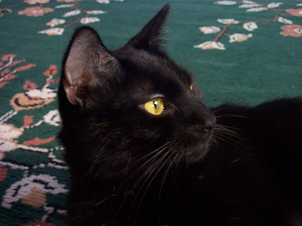 oday I unloaded the dishwasher and put away all the clean dishes, washed out four pieces of recyclables and put those in the recycling bin, replaced two burnt out light bulbs, put away a bunch of stuff, folded and put away two loads of laundry, and was planning on vacuuming and dusting the living room until the cats intervened by 1) crapping on the downstairs bathroom rug, and 2) two of them puking on the living room rug. JJ (shown at left) managed to get into the regular cat food that he’s not supposed to eat, then vomited it all up on our newly washed throw blanket and all the way down the back of our living room futon onto the carpet. This required me to wipe down the futon frame, spot-clean the stained part of the futon, pick up bits of half-digested cat food from the carpet, then run the carpet cleaner over it whilst swearing like a sailor. Luckily, Jaz just overate a bit and left a delicate pile of hork that I could pick up with some kitchen roll and spot-clean with a cloth. Throw blanket and bathroom rug are now in the next pile of stuff to be washed.