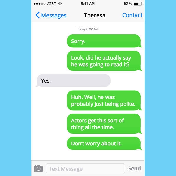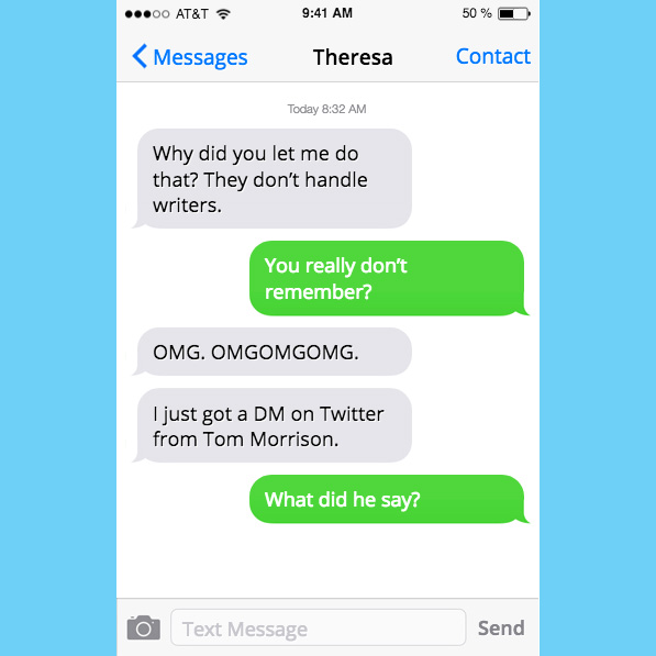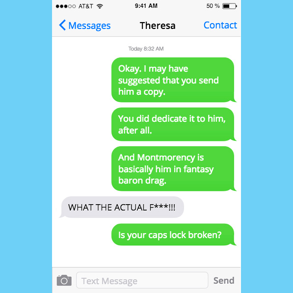 Also, out of sheer amusement, I would up transferring the text message section I blogged about yesterday into an app that creates fake iPhone 7 text messages. That was fun!