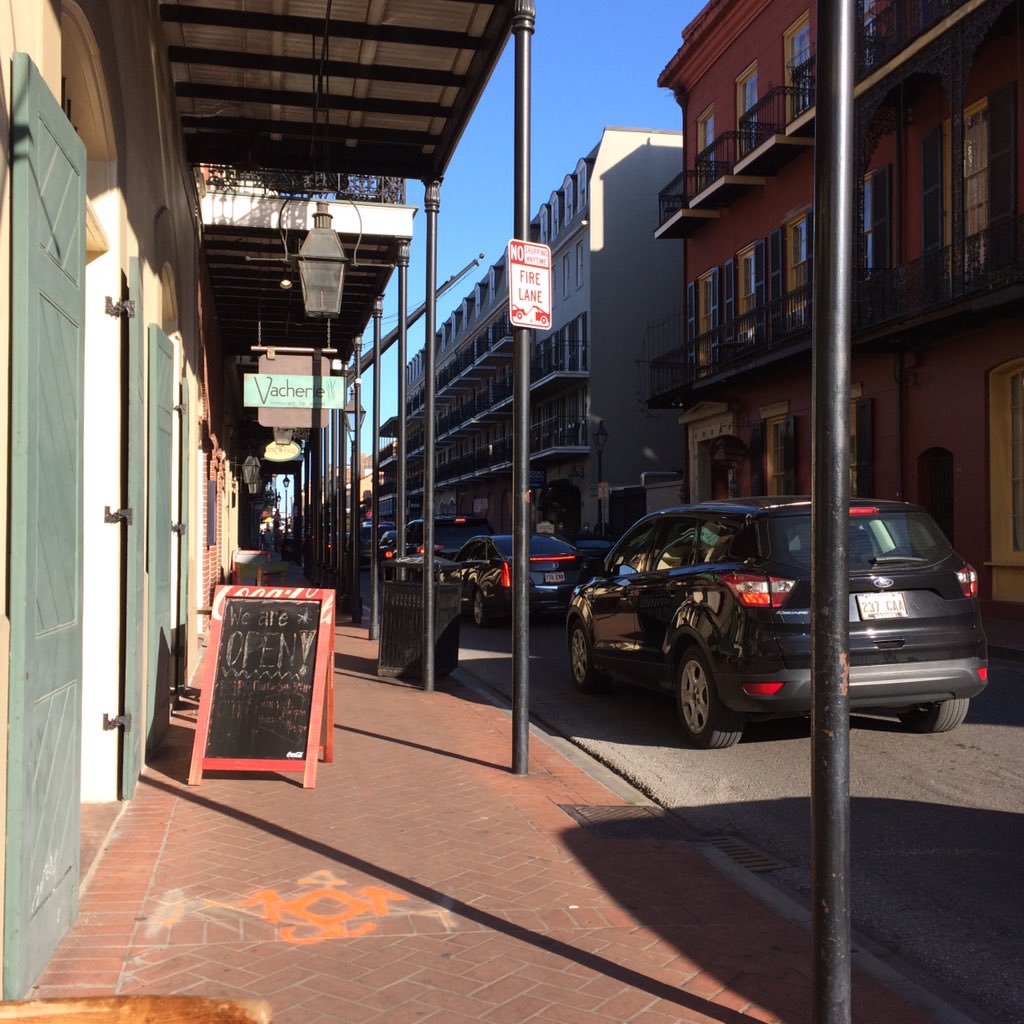 But Thursday afternoon we got everything loaded into the car, thanked the (fully vaccinated) cat sitter profusely, reassured the J Crew that we loved them, and headed off to DFW. My paycheck had extended itself to business class seats, so the flight to NOLA was comfortable (helped by the Bailey’s on ice I had, since I wouldn’t be driving anywhere once we landed), and getting through security had been a breeze. The other end was something of a different story, as we’d landed out in Ulan Bator and getting to the baggage claim was a challenge for Nick the Gimp whose mask was now soaked with respirated moisture and had to stop twice to pull it away from my face and gasp for breath. By the time we braved the taxi queue and got one to take us to the Four Points Sheraton on Bourbon, I sortakinda wanted to pass out. I mean, I hadn’t moved that much in over a year, and it showed.
