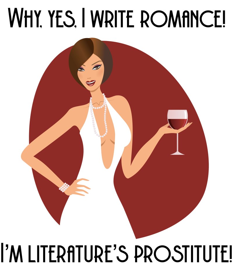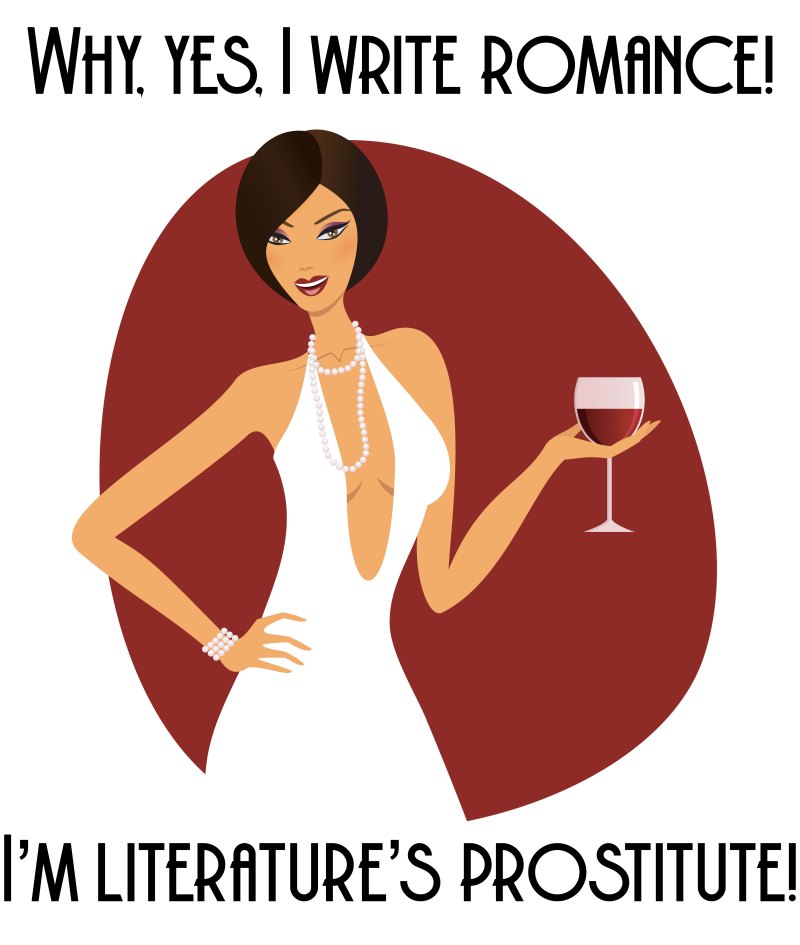 So there’s a bit of a foofaraw going on in Romancelandia about a certain individual calling romance writers “literature’s prostitutes.” Needless to say, there was an immediate call for this on a t-shirt because that’s how romance writers roll, so these are my entries (currently available at Teespring — I’ll be doing mugs and stickers as well). I’m also working on a “I’m just here for the ratio” design so keep an eye out for that.