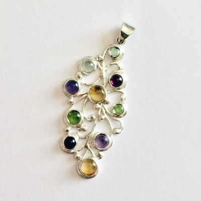 So, yeah, this is not a good time to poke the bear. Haven’t done a damn bit of writing today and I don’t care. I did get some granulation made and a set of earrings done for an Etsy sale, so I’ve got that going for me, and I finished a pendant that wasn’t so much an art project as it was a way to use up a bunch of pretty but really small cabochons I had (citrine, amethyst, peridot, garnet, and white topaz) and some scrap sterling silver that was too nice to toss into the recycling pouch.