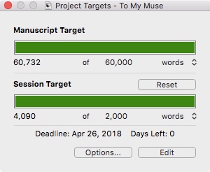 It’s done! Yes, I finished it on Friday, and it’s currently simmering while I get pending jewelry projects done and generally play catch-up on things that fell by the wayside during my final push (like the housework, the laundry, paying bills, getting my car’s safety inspection done, making calls to various people to get things sorted with them, you know the drill). I have to say, I’m very happy with how the story turned out, and I’m really hoping that everyone likes my first stab at a contemporary romcom. I think it’s funny as hell, but I would — I wrote it. Also, it has a running Penguins of Madagascar joke in it, because I’m all about the pop culture.
