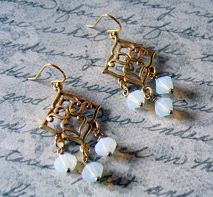 - A pair of 14K gold and opalite earrings from Belaurient Arts