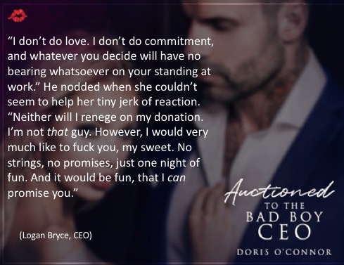 Welcome to another edition of Marvelous Monday Reads, angels! Today I’m featuring the delightful Doris O’Conner and her smouldering new BDSM romance Auctioned to the Bad Boy CEO. Take it away, Doris!