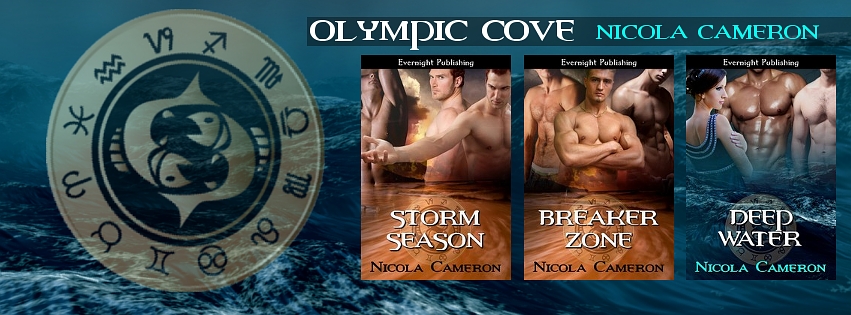 Hello, darlings! This will be the last teaser from Book Three of my Olympic Cove series, Deep Water, so I decided to go out on a high note with a scorching three-way between Poseidon, Amphitrite and Griffin. No, don’t thank me — I live to serve. 😀